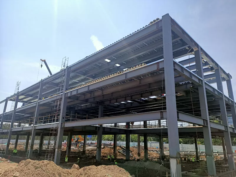ਆਵਾਜਾਈ ਅਤੇ ਸਪੁਰਦਗੀ: ਪਹਿਲਾਂ ਤੋਂ ਤਿਆਰ ਕੀਤੇ ਸਟੀਲ ਦੇ ਹਿੱਸੇ ਫਿਰ ਉਸਾਰੀ ਵਾਲੀ ਥਾਂ 'ਤੇ ਪਹੁੰਚਾਏ ਜਾਂਦੇ ਹਨ, ਜਿੱਥੇ ਉਨ੍ਹਾਂ ਨੂੰ ਯੋਜਨਾ ਦੇ ਅਨੁਸਾਰ ਇਕੱਠਾ ਕੀਤਾ ਜਾਂਦਾ ਹੈ ਅਤੇ ਬਣਾਇਆ ਜਾਂਦਾ ਹੈ। ਸਥਾਪਨਾ ਅਤੇ ਨਿਰਮਾਣ: ਇਸ ਪੜਾਅ ਵਿੱਚ, ਤਜਰਬੇਕਾਰ ਸਟੀਲ ਢਾਂਚੇ ਦੇ ਸਥਾਪਨਾਕਾਰਾਂ ਦੀ ਇੱਕ ਟੀਮ ਇਮਾਰਤ ਦੇ ਸਟੀਲ ਪਿੰਜਰ ਨੂੰ ਖੜਾ ਕਰਨ ਲਈ ਮਿਲ ਕੇ ਕੰਮ ਕਰਦੀ ਹੈ। ਇੰਸਟਾਲੇਸ਼ਨ ਪ੍ਰਕਿਰਿਆ ਵਿੱਚ ਵਿਸ਼ੇਸ਼ ਔਜ਼ਾਰਾਂ, ਕ੍ਰੇਨਾਂ ਅਤੇ ਭਾਰੀ ਮਸ਼ੀਨਰੀ ਦੀ ਵਰਤੋਂ ਕਰਕੇ ਪ੍ਰੀ-ਫੈਬਰੀਕੇਟਿਡ ਸਟੀਲ ਦੇ ਹਿੱਸਿਆਂ ਨੂੰ ਜੋੜਨਾ ਸ਼ਾਮਲ ਹੁੰਦਾ ਹੈ।